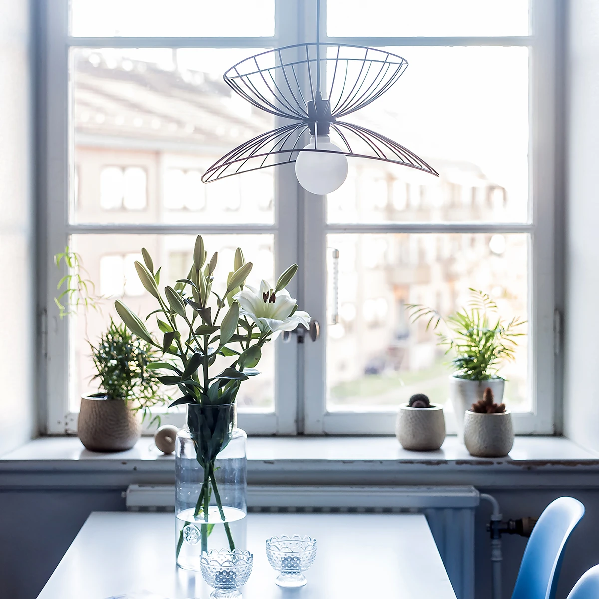De Ray plafondlamp 45 Ø is een grafisch ontworpen lamp van het geliefde merk Globen Lighting. De ronde vormen en dunne metalen stangen doen denken aan de ruimte en de lamp ziet er bijna uit als een planeet aan het plafond. De lamp is ontworpen door Patrick Hall en met Ray krijgt u twee lampen in één. U kunt namelijk zelf kiezen of u de twee kappen in elkaar of op elkaar wilt plaatsen. Kies voor een grotere lichtbron voor een extra sfeervol effect.